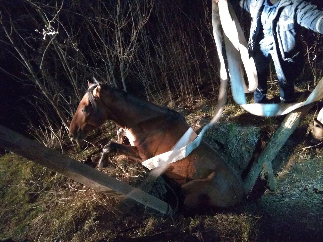 Спасатели с помощью веревки достали коня из колодца. Жизни животного ничто не угрожает.