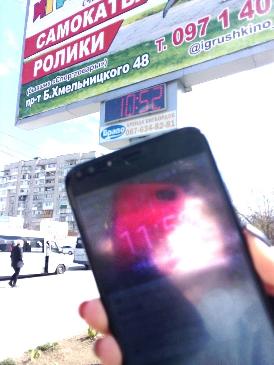 Несколько лет назад владелец рекламного щита около Шахматной школы установил на борде электронные часы. Установил и теперь систематически о них забывает.