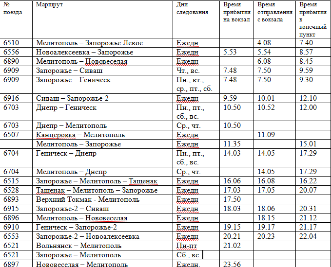 Обновленное расписание электричек по станции Мелитополь