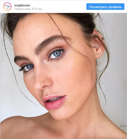 «Мыльные» брови – логическое продолжение формирования бровей с помощью геля. При помощи обычного мыла или специального средства волоски расчесываются вертикально вверх.