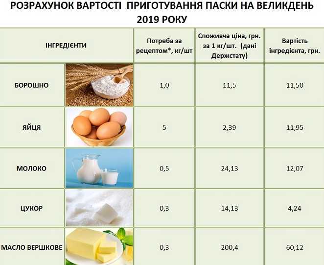 "Основное влияние на повышение стоимости кулича за период, прошедший с предыдущей Пасхи, оказало подорожание сливочного масла (на 11%, +6 грн на изделии), пшеничной муки (на 19%, +2 грн), молока (на 10%, +1 грн). Зато стоимость яиц и сахара снизилась на 9-13%, что также способствовало замедлению темпов роста стоимости кулича", – сказано в сообщении.