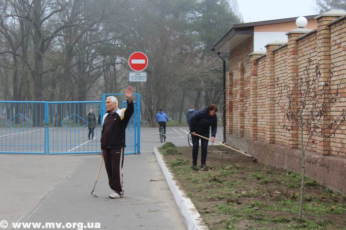 Привести в порядок прилегающую к стадиону территорию вышли сотрудники управления молодежи и спорта и сотрудники стадиона - технический персонал, тренеры, а также спортсмены-атлеты, занимающиеся на стадионе.