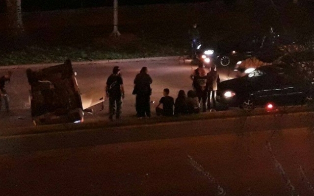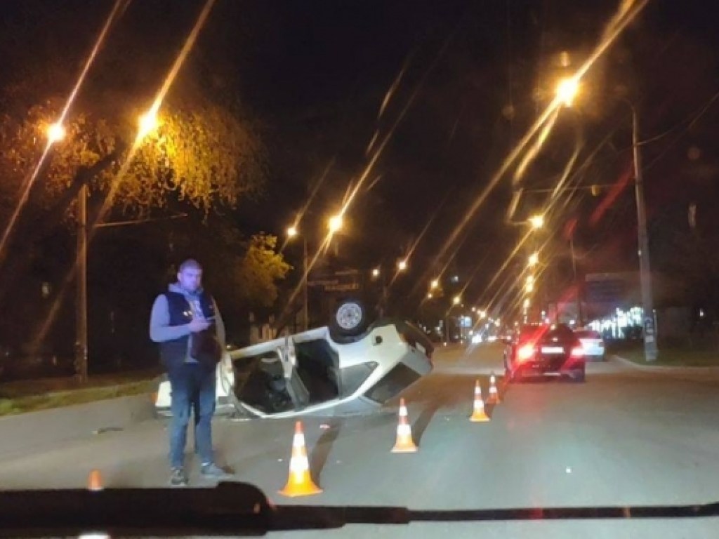 Один автомобиль от удара перевернулся, пролетев через разделитель.