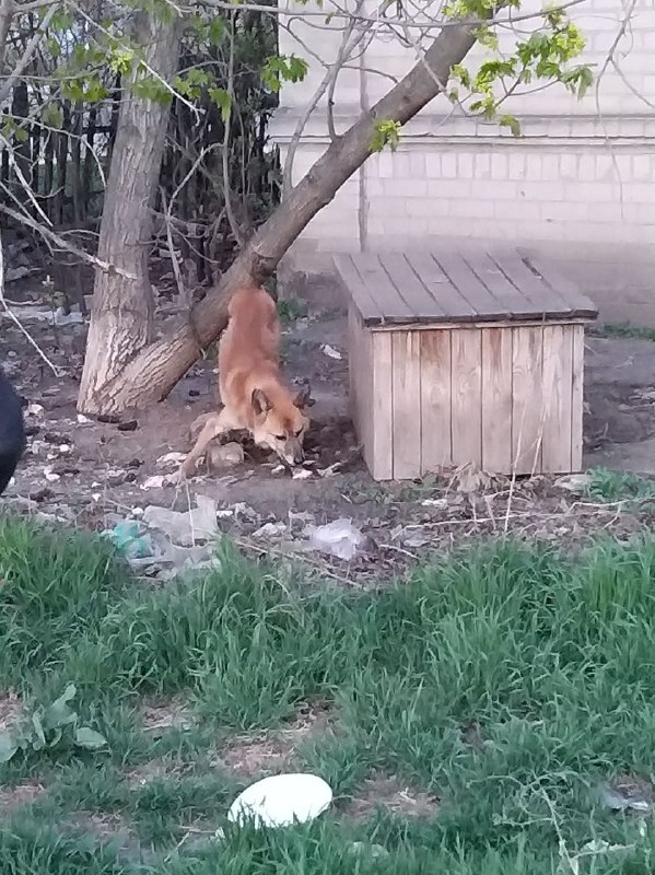 «Доброго времени суток. На Новом Мелитополе напротив магазина "Скорпион" и "Паляниця", стоит полуразваленый домик. Во дворе две собаки на привязи, очень худые, два скелета просто. Одна белая бегает без привязи, но выглядет нормально, видимо её подкармливают люди. Мы пытались покормить собак, но там деревья сильно мешают пробраться. Собаки оооочень голодные и истощенные. Цепь короткая. Я понимаю, что видимо у людей нет возможности их содержать, но так мучать тоже не вариант!!!! У них ребра просвечиваются, очень худые.Они не могут даже просто сами добыть себе еду. Вчера с огромными усилиями пробрались туда и дали им поесть, сделали фотографии. Может кто-то знает кто там проживает? И как вообще можно пристроить собак!? Извините, фото не чёткие, но можно рассмотреть, что собаки редко едят, истощенные. Они охотно идут на контакт и просто хватают еду, как в последний раз. Возле этого дома рядом остановка для маршруток. Порожает то, что проходит ежедневно толпы людей, но никому дела нет, хотя видно даже через заросли и деревья, что собаки худые. Белая собака без привязи выбегает на улицу, её можно