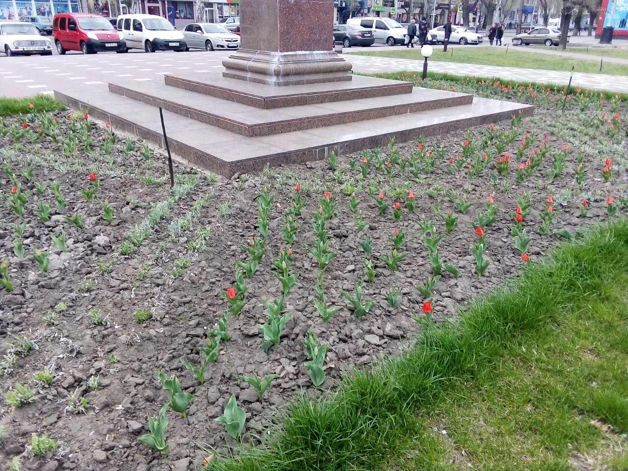 На площади Победы высадили тюльпаны (ФОТО)