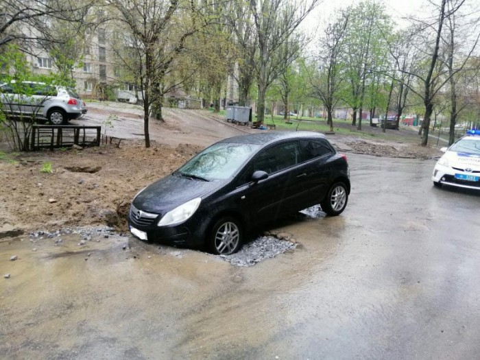 Отремонтировали: во дворе запорожской многоэтажки авто провалилось в яму