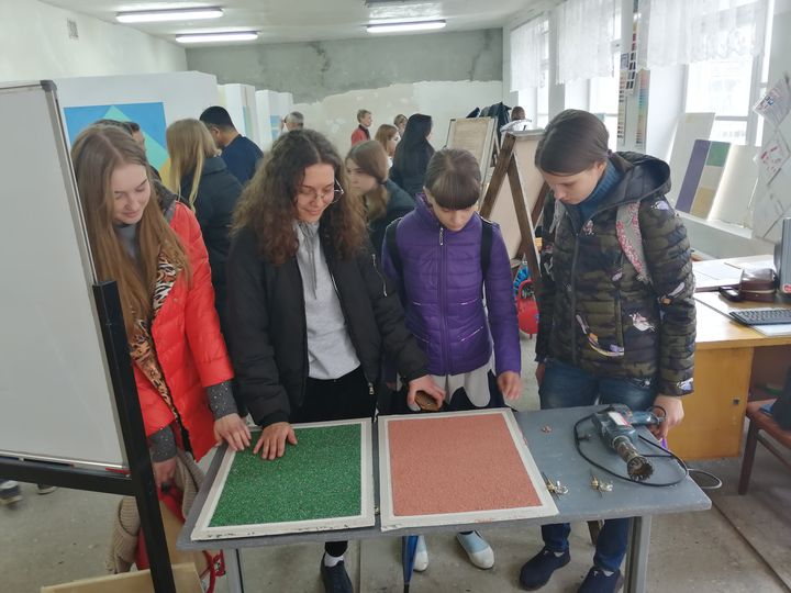 В мастерских центра их ожидали мастер-классы по отделке гипсокартонных поверхностей при помощи трафаретов и инструментов для декорирования, по современной отделке декоративным покрытием «Нокдаун», по облицовке поверхностей мозаикой и диким камнем.