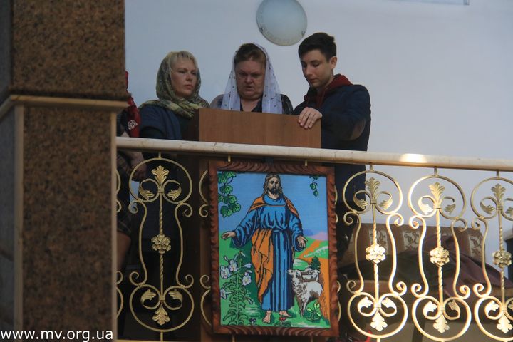А вот в храме Святых Кирилла и Мефодия продолжается служба. Здесь настоятель проводит священный молебен. Постепенно храм наполняется новыми прихожанами. Близ церкви стоят несколько человек в ожидании освящения вербы.