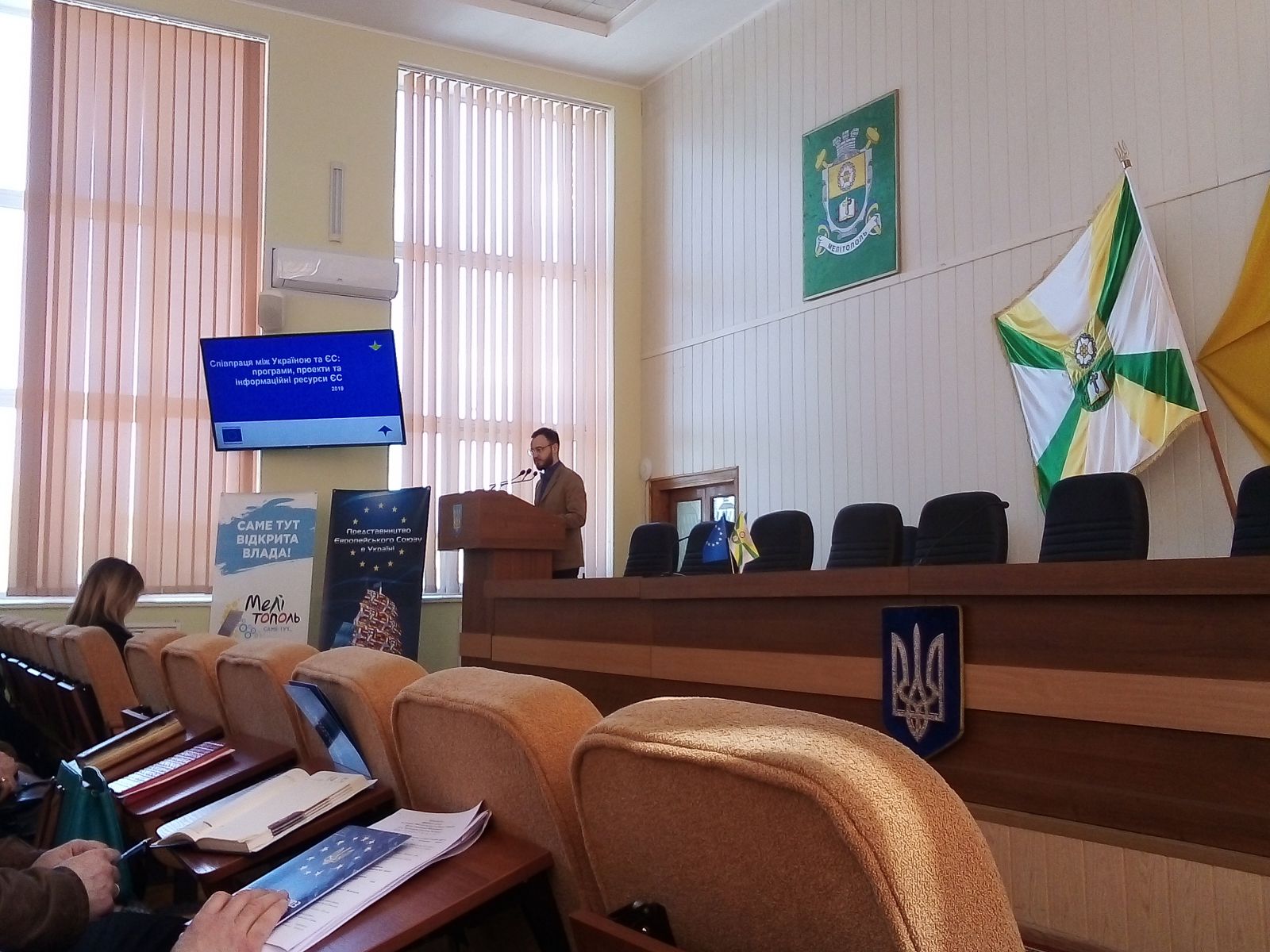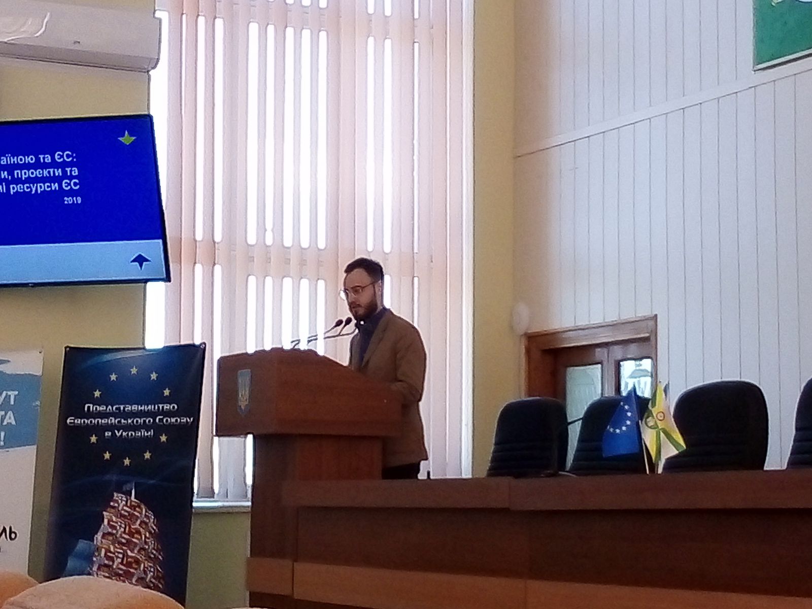 Проекты презентовал менеджер информационной компании Станислав Корольков. Он рассказал о проекте U-Lead, посвященном децентрализации, о программах для бизнеса, таких как Cosme, EU4Business, Horizon2020 и другие.