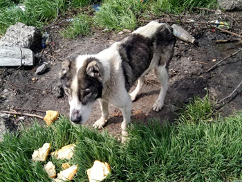 Эту собаку забрал я. Старая, изможденная, многократно битая и недокормленная (судя по размерам) и конечно в очень печальном состоянии. К тому же и рак груди. Ситуация очень и очень печальная.