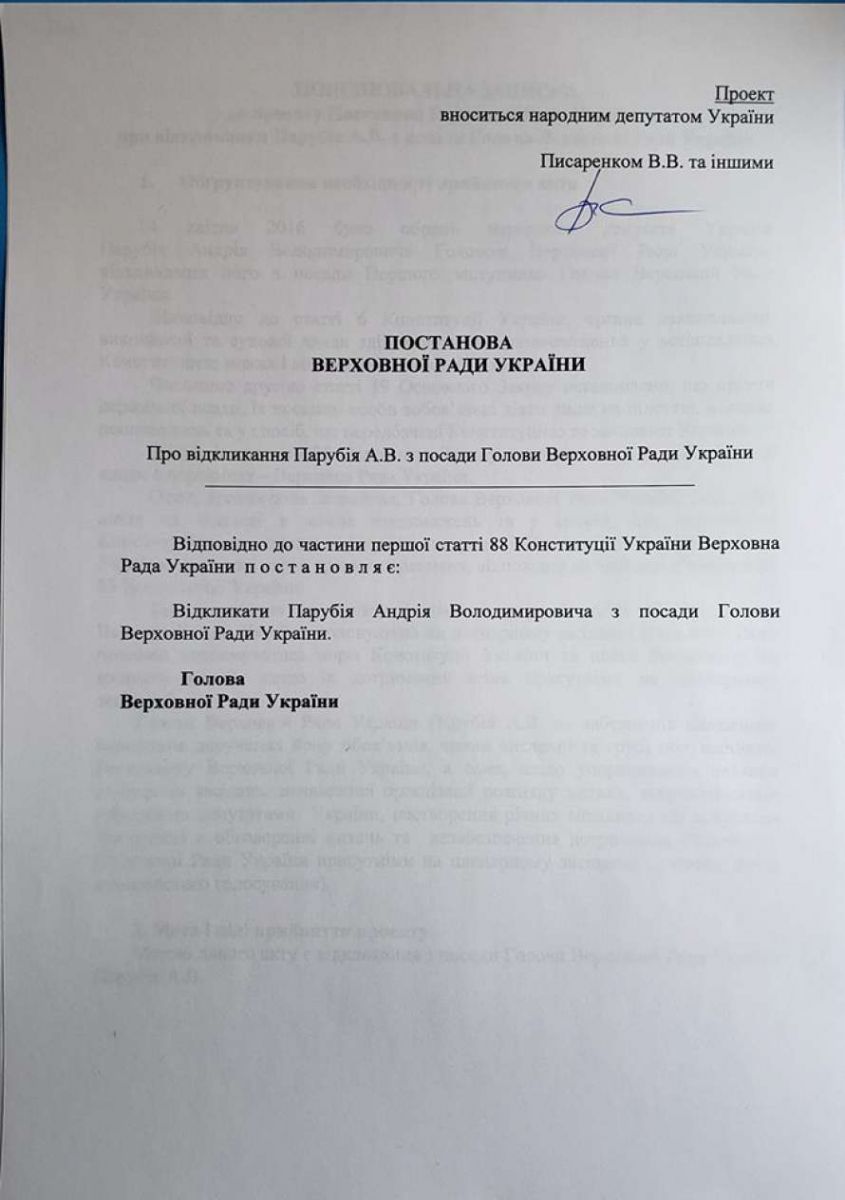 Начался сбор подписей под проектом постановления за отставку спикера ВР.