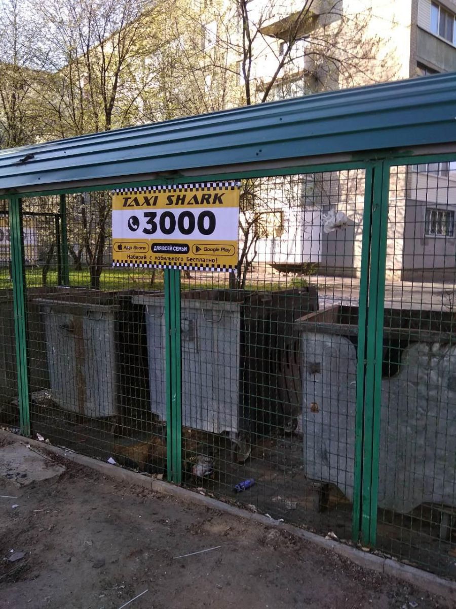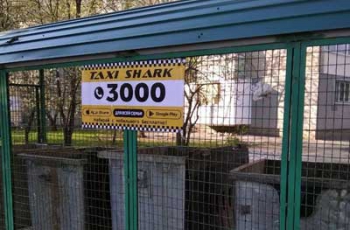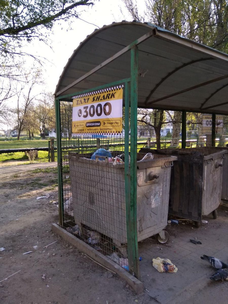 Так, на Новом Мелитополе на контейнерной площадке разместилась яркая и броская реклама такси. Пропустить такую горожанам будет непросто.