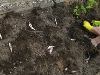 Если в момент высадки рассады рыбы не оказалось под рукой, то это можно сделать и позже, достаточно глубоко прикопав ее рядом с кустом. Кроме того, такой способ подкормки рекомендуют проводить в течение всего вегетационного периода.