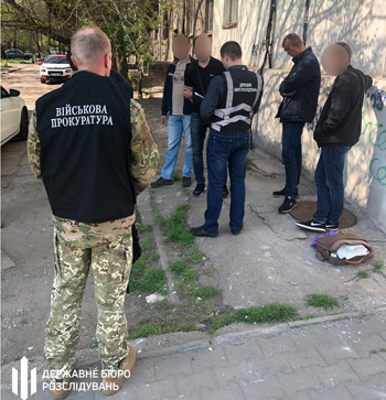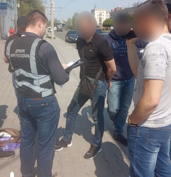 Следователи Государственного бюро расследований готовят задержанным сообщение о подозрении в вымогательстве, совершенном по предварительному сговору группой лиц с повреждением или уничтожением имущества (ч. 2 ст. 189 Уголовного кодекса Украины).