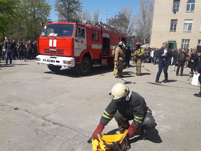 23 апреля они провели учебную эвакуацию студентов при «пожаре» в аудитории Мелитопольского колледжа ТГАТУ и «спасение» человека. Целью мероприятия было еще раз напомнить всем о действиях при возникновении чрезвычайных ситуаций. После мероприятия спасатели рассказали об основных правилах пожарной безопасности. У всех желающих была возможность ознакомиться с пожарным оборудованием и увидеть, как и какими инструментами проводится спасение во время чрезвычайных ситуаций.