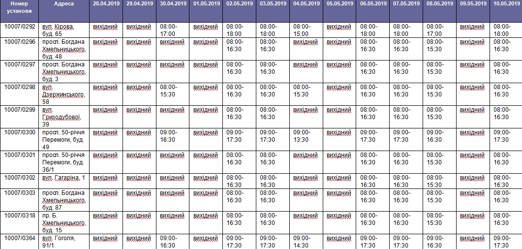 График работы "Ощадбанка" (общий по стране):