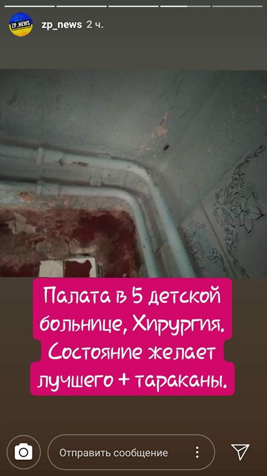 На днях в популярном паблике Запорожья в "Инстаграм" появилось жуткое фото, сделанное в стенах пятой детской больницы, что расположена на Бабурке.