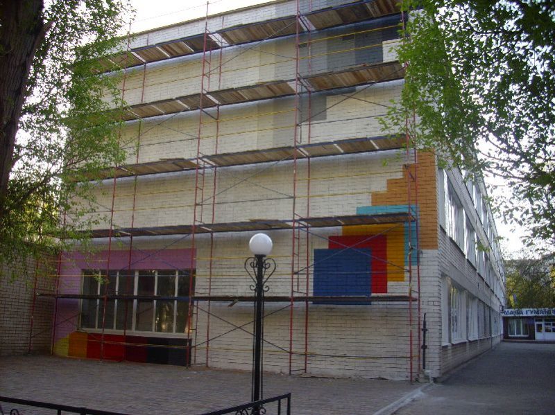 Первой школой, где начался творческий процесс, стала школа искусств № 3 в Хортицком районе. Она находится в одном здании с коллегиумом "Малая гуманитарная академия" (бывшая 9-я школа). Так, художник из Луцка Александр Кальков нарисует здесь мурал в стиле геометрического абстракционизма.