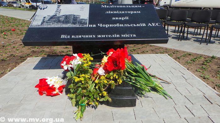 На открытие мемориальной доски пригласили десятки мелитопольских ликвидаторов, многих из них наградили грамотами горсовета, а шесть человек получили ордена «Герой Чернобыля». После благодарственных слов от представителей городской власти и председателя общественной организации, к мемориалам возложили цветы и отслужили панихиду по умершим от последствий аварии.