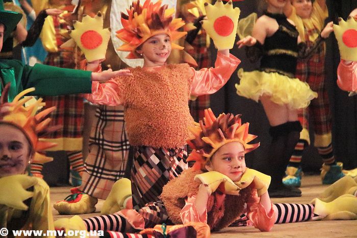 Забавными танцами и яркими тематическими костюмами порадовали воспитанники театра учащихся школ города. Они с помощью танцев разыграли на сцене отрывки из известных мультфильмов: "Незнайка", "Ежик в тумане" и других. Ребята с восторгом реагировали на происходившее на сцене и одаривали выступающих громкими аплодисментами. Улыбки с лиц мелитопольских школьников не сходили на протяжении всего концерта.