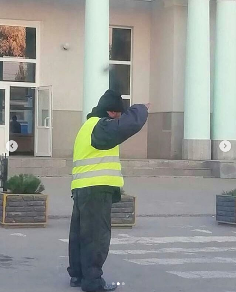 Обитатель железнодорожного вокзала станции Мелитополь насмешил сеть своей униформой.