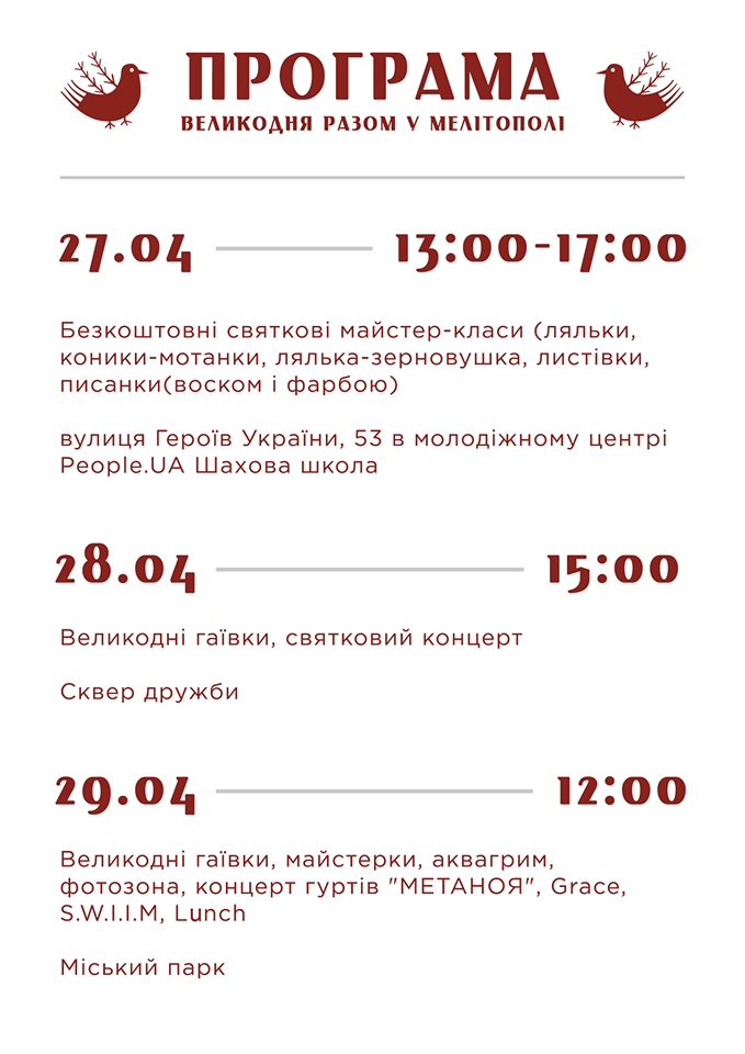 В пасхальные выходные состоится «Великдень разом у Мелітополі».
