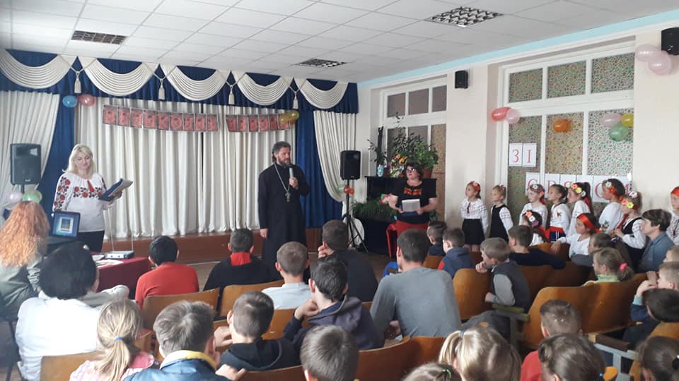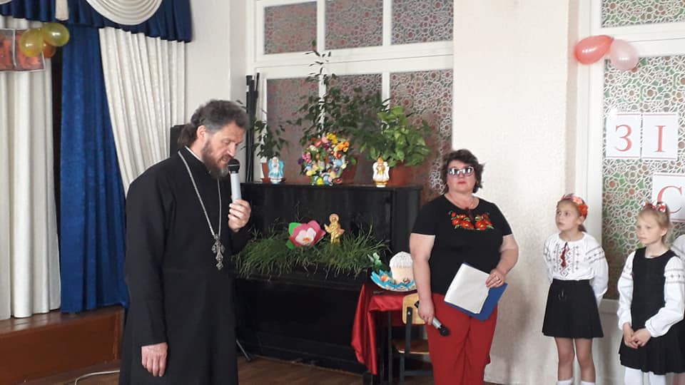Протоиерей поздравил всех присутствующих с Пасхой, рассказал ученикам историю этого великого праздника, а также о значении Воскресения Христова для всех нас. Особое место в выступлении было отведено символу Пасхи - писанкам, их значению.