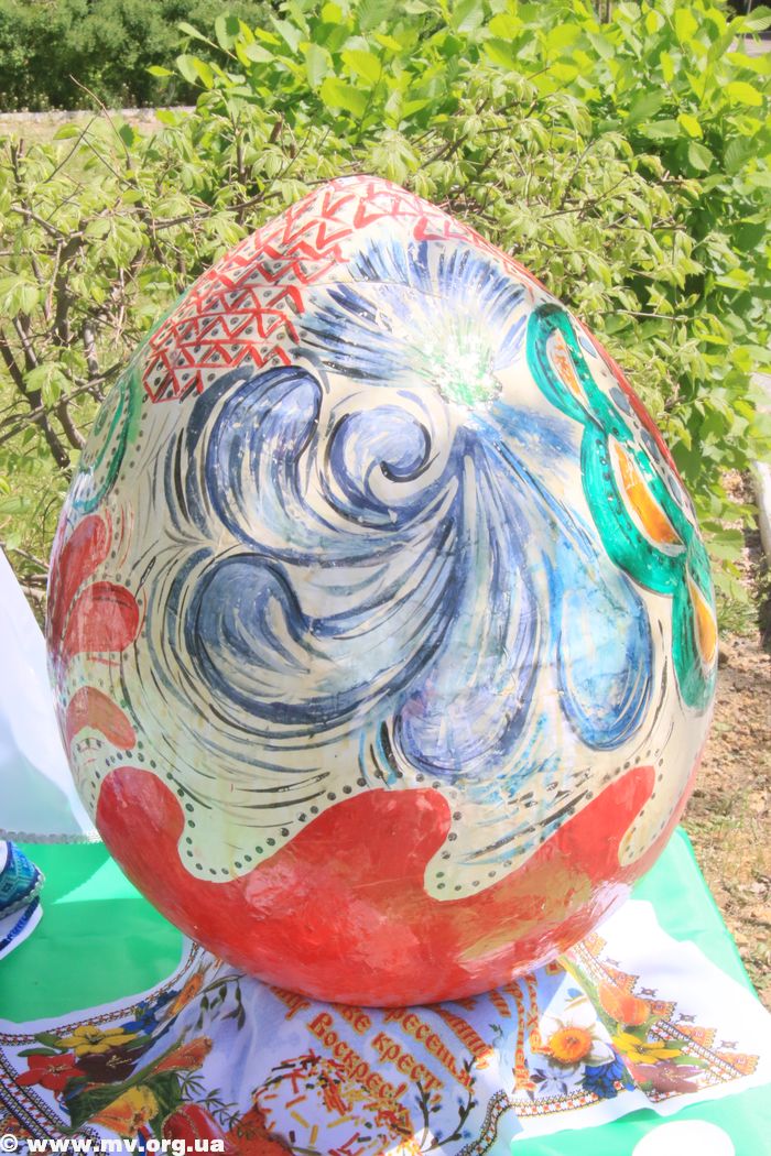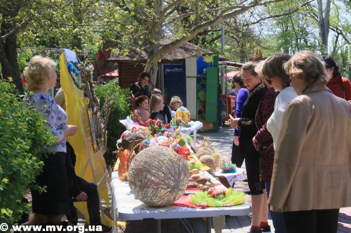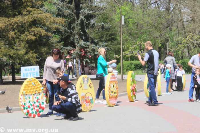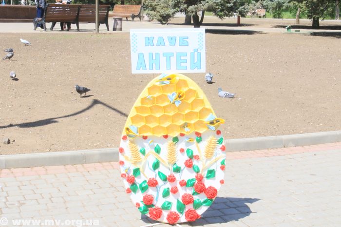Недалеко от этой выставки клуб по месту жительства «Антей» расставил свои изделия – большие яйца, выполненные в разных техниках. Мелитопольцы присвоили им статус фотозоны и активно фотографируются здесь сами и с детьми.