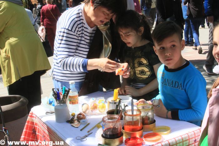 Можно просто посмотреть на красоту, созданную чужими руками, а можно попробовать себя в росписи писанок. Правда, среди желающих расписать яйцо по традиционной технологии в основном дети. Рядом проходят и другие мастер-классы, организованные представителями библиотечной системы Мелитополя.