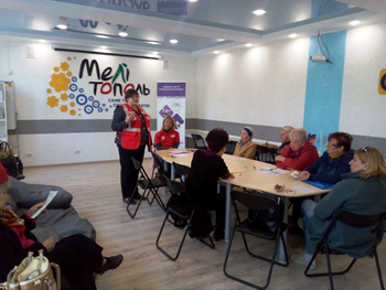Библиотекарь Наталья Скотницкая организовала для взрослых встречу с тренером общества Красного Креста Украины Светланой Старыгиной под названием «Учись спасать жизни». Медицинский специалист давала советы, как действовать во время сердечного приступа, высокого артериального давления, ДТП и в других чрезвычайных ситуациях. Для того чтобы встреча прошла эффективно, был использован манекен-симулятор, чтобы помочь каждому отработать навыки искусственного дыхания при остановке сердца.