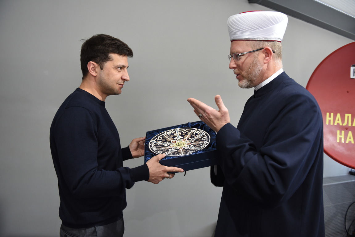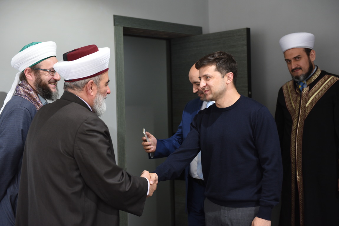 Новоизбранный президент Владимир Зеленский, рассказывавший ранее о своем отношении к религии, встретился с духовными лидерами мусульман Украины. Во встрече приняли участие председатель Духовного управления мусульман Украины, шейх Ахмед Тамим, муфтий Духовного управления мусульман Крыма Айдер Рустемов и муфтий Духовного управления мусульман Украины "Умма" шейх Саид Исмагилов, сообщает пресс-служба Зеленского.