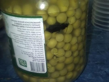Жительница Мелитополя купила консервированный горошек с сюрпризом.