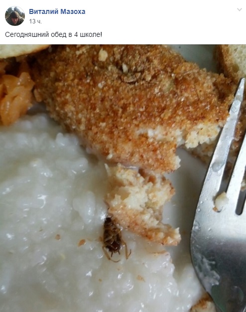 В Запорожской области ученик обнаружил в школьном обеде прусака (ФОТО)