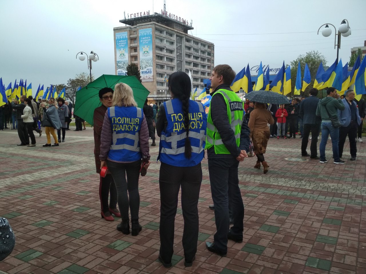 Понемногу собираются горожане (в основном чиновники, школьники и студенты).