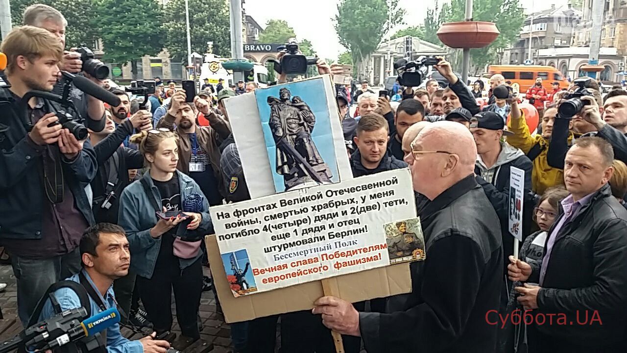 Примерно в половине 10 утра на площади Маяковского собрались участники акции “Полк Победы, организатором которой является Андрей Иванов. Кроме них на другой стороне собрались их противники из «Демократической сокиры». Кроме того, бдит за порядком огромное количество правоохранителей, а также группа оперативного реагирования медиков.