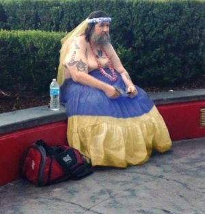 да, действительно террорист женщина)))) капец, хоть бы в этот день не трогали бы людей, прям таки запрещенная символика, лучше показывайте свою работу на улицах города, под руки взяли и ведут преступницу(((неготив полиции!!!