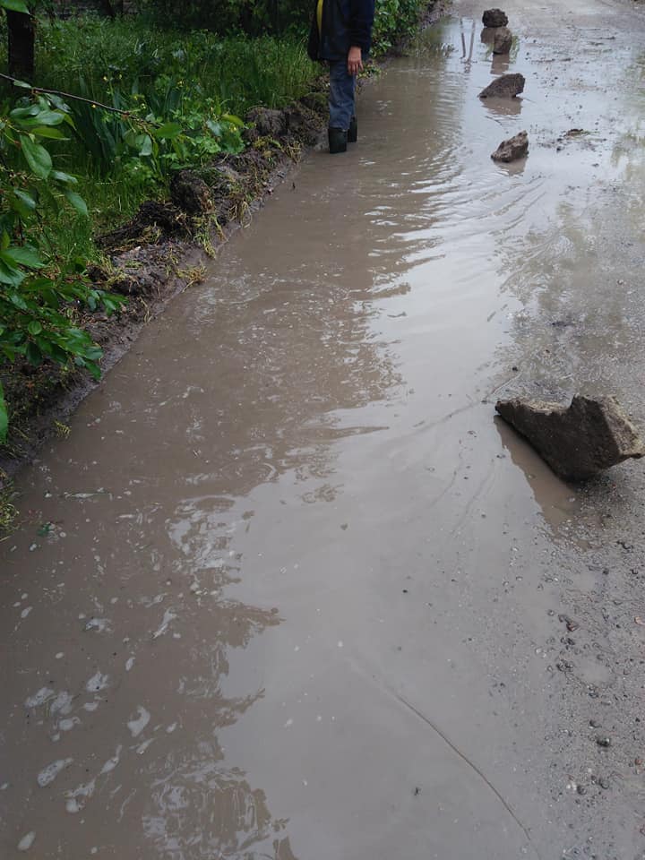 Так, очевидцы опубликовали фото того, что наделал сильный дождь. За несколько минут ливень затопил улицы села и нанес вред местным жителям. В частности, вода подмывает фундамент домов.