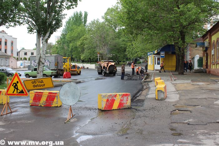 На спуске по ул. Героев Украины от пр. Б. Хмельницкого до главного корпуса МГПУ им. Б. Хмельницкого почти завершены ремонтные работы. Тем не менее эта часть дороги все еще остается перекрытой.
