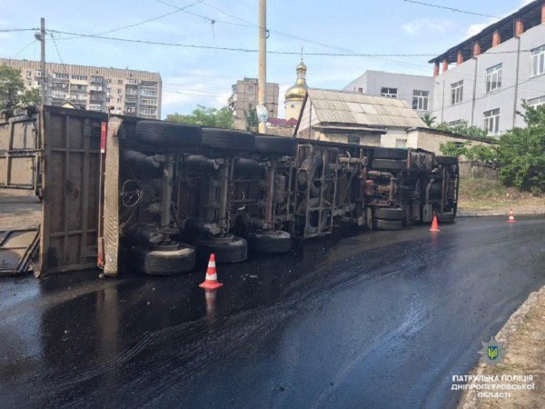 В Днепре перевернулась фура (ФОТО)