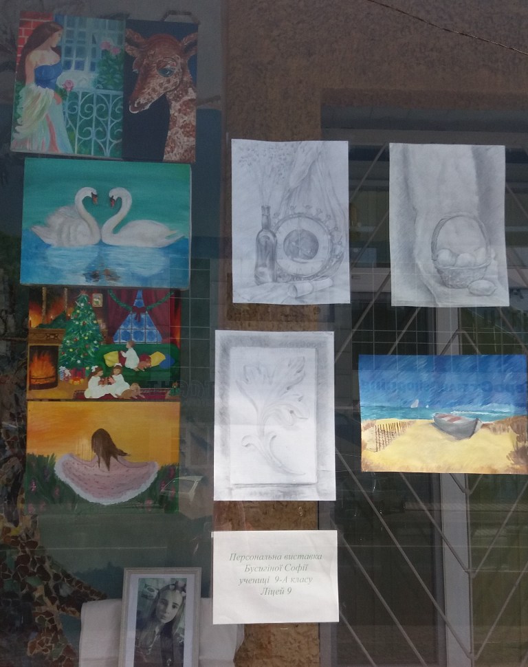 Поражают мелкими мазками работы Софии Бусыгиной. Девчонка посещает художественную школу и берет уроки мастерства у Валерия Волика. София любит петь, посещает группу «Джерело» и занимается живописью в студии «Веселка». Ее картины - это портреты, которые воспроизводят личное видение юной художницы и гармонию правды и красоты.