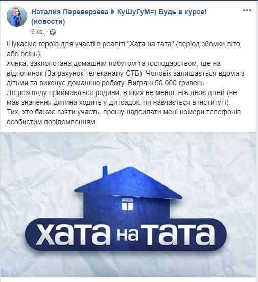 Сегодня, 17 мая, в одной из групп в социальной сети разместили объявление о наборе героев для популярного шоу на телеканале СТБ.