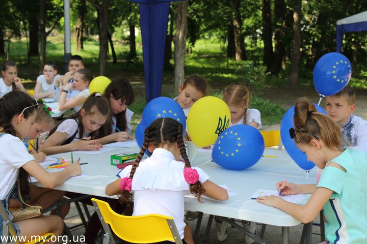 Параллельно в тени деревьев свои активности мелитопольцам предлагали гости города - представители управления внешней политики Запорожской облгосадминистрации. Зная, что в Мелитополе масштабно отмечается День Европы, запорожцы решили поучаствовать в действе. Жителям города они предлагали сыграть в брейн-ринг, поучаствовать в художественном конкурсе и спортивных эстафетах.