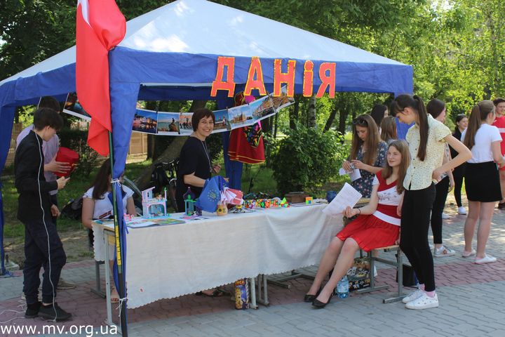 На локации лицея № 19, который представлял Бельгию, можно было получить туристические буклеты, рецепты национальной кухни, станцевать польку и поучаствовать в художественном конкурсе: раскрасить символ Бельгии - мельницу - на скорость за сладкий приз.
