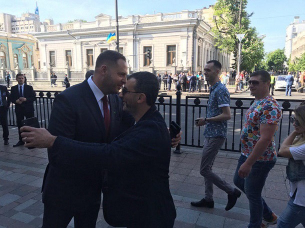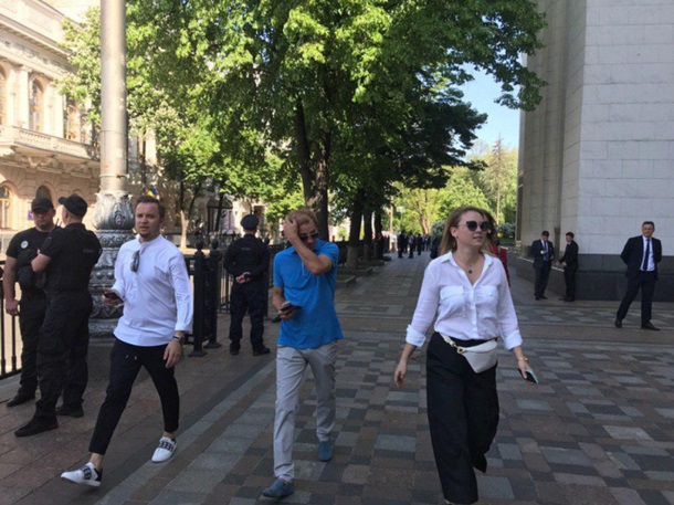 Возле входа в здание Верховной Рады Украины были замечены Юрий Корявченков, Мика Фаталов и Артем Гагарин, а также Евгений Кошевой.