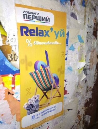 Объявление рекламировало ломбард под очень креативным названием «Relax’уй» (читается «Релаксуй», но написанное вызывает вполне понятную аллюзию).