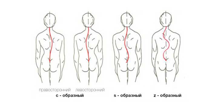 Отдельное внимание необходимо уделить видам сколиоза, так как он может быть С-образным, S-образным или Z-образным. Первый вид является наиболее распространенным и характеризуется тем, что позвоночник при С-образном сколиозе имеет форму буквы "С", то есть образует дугу и может быть право- или левосторонним. При S-образном сколиозе образуется уже 2 дуги, вследствие чего позвоночник принимает форму буквы "S". А при Z-образном виде на позвоночнике образуется целых 3 дуги, где верхняя и нижняя направлены влево или вправо, а средняя в противоположную им сторону.
