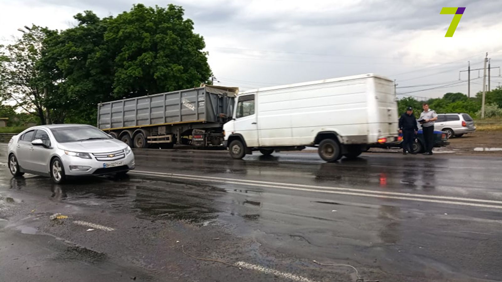 Грузовик-тягач DAF двигался со стороны Клеверного моста в направлении Усатово. Навстречу ему ехал микроавтобус Mercedes Sprinter.