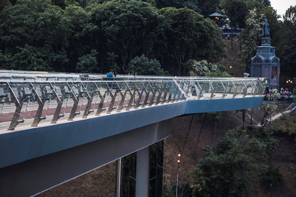 Вечером в субботу в Киеве открыли пешеходно-велосипедный мост через Владимирский спуск, который соединил Крещатый парк и Владимирскую горку. Событие приурочили ко Дню Киева, сообщил "Информатор" 25 мая.