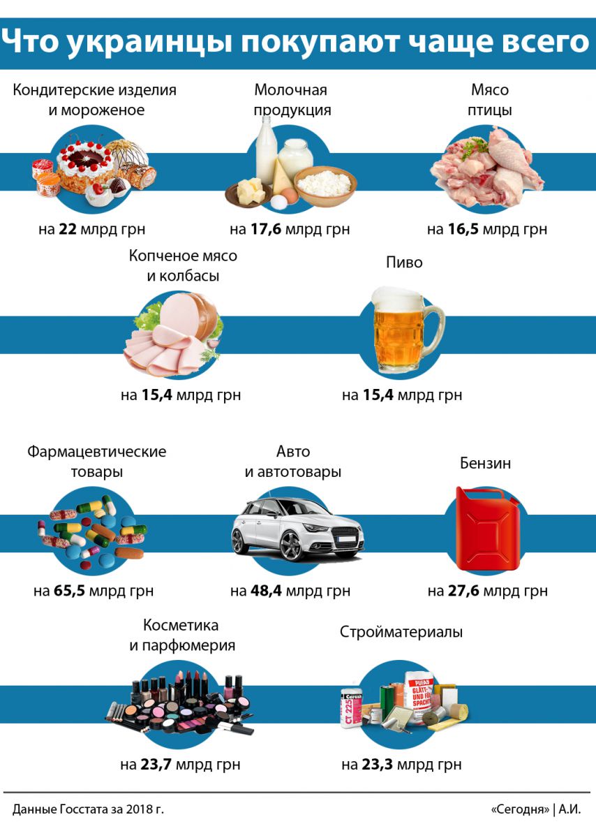 На втором месте разместились автомобили и автотовары, на которые украинцы потратили 48,4 млрд грн – 7,3%, в прошлом году цифра была чуть меньше – 47,5 млрд. Много тратится и на бензин – 27,6 млрд. Правда, в 2017 г. эти траты были куда выше и составляли 36,7 млрд грн.