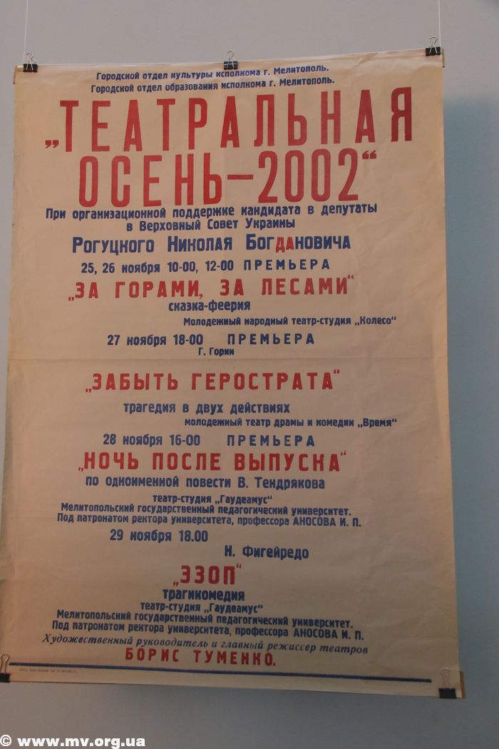 Вчера в городском краеведческом музее открылась выставка «Борис Туменко: все життя – театру», на которую пришли все, чья жизнь и деятельность была связана с этим великим мелитопольцем: родные, друзья, коллеги, ученики. На мероприятии также присутствовала вдова Б. Туменко – Наталья.